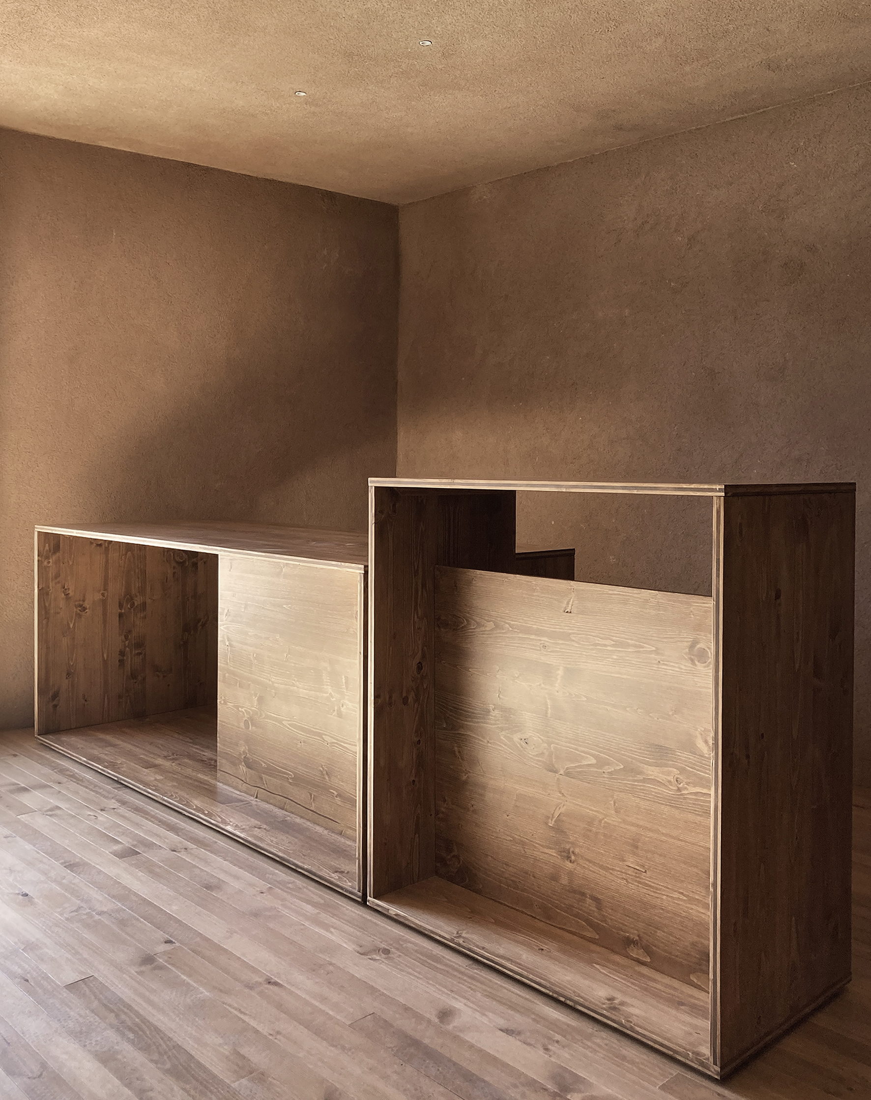 La planta baja se entiende como una cavidad de greda volcánica donde el visitante se empieza a adentrar en el mundodel volcán.