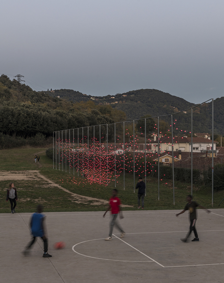 El lugar elegido para realizar la intervención ha sido la red de protección existente del antiguo campo de fútbol del barrio de Sant Miquel en Olot, tanto por su ubicación como límite permeable entre el barrio y los volcanes como por su valor como “ruina”, como elemento urbano que ha perdido su razón de ser original pero que se mantiene como hito conformando ciudad.